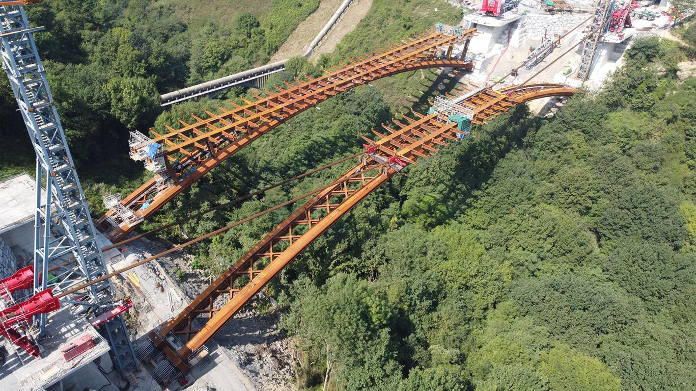 The AP-8, known as Supersur, is the Bilbao ring road. In its last section it crosses a particularly complex orography area that has led to the construction of the 1950 m long Arnotegi tunnels and the 620m long Seberetxe tunnels. The connection between these two works is carried out by saving the Bolintxu ravine, an enclave of high scenic interest and whose environmental characteristics with rich native flora should be protected. To meet these strict design and construction requirements, an innovative solution of great technical complexity was chosen that respects the natural conditions of the valley.