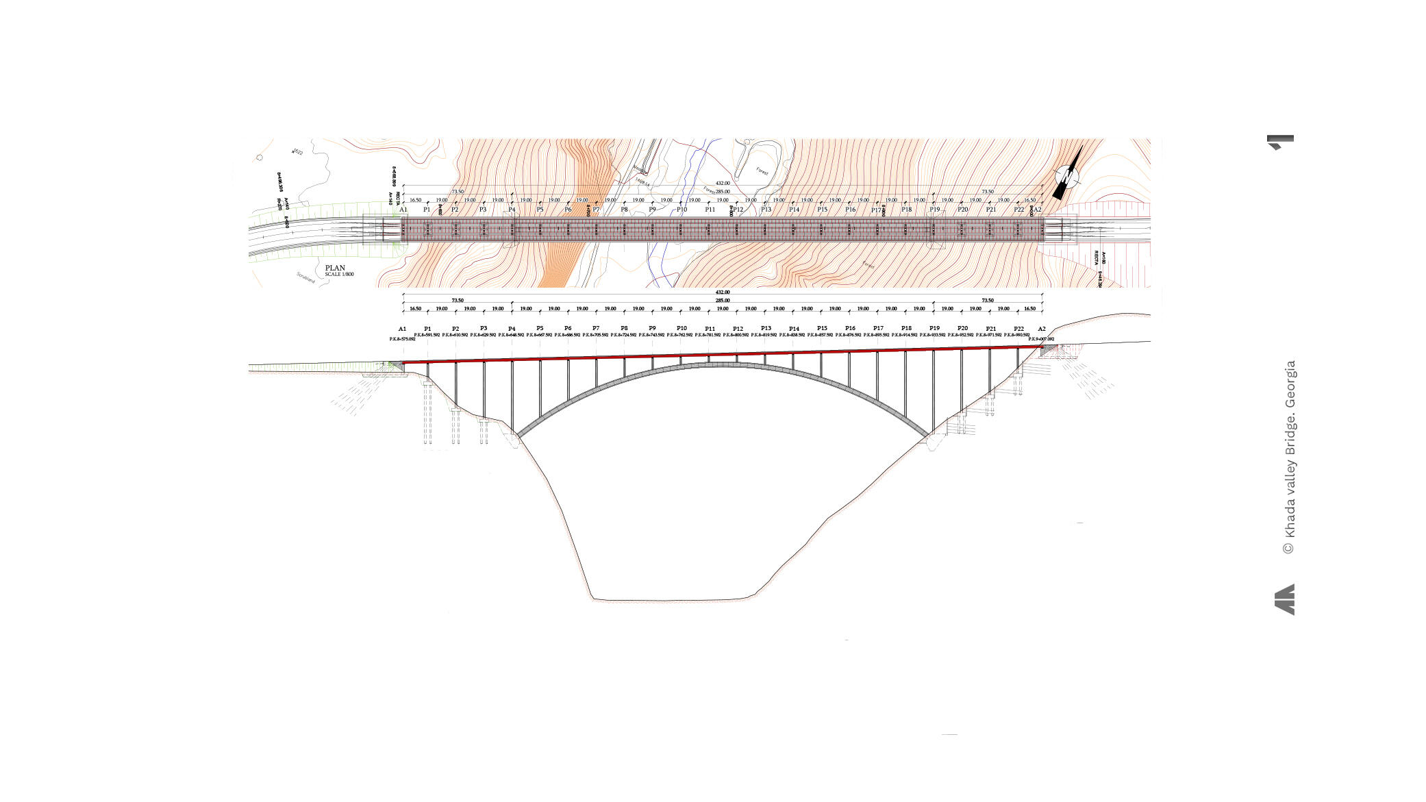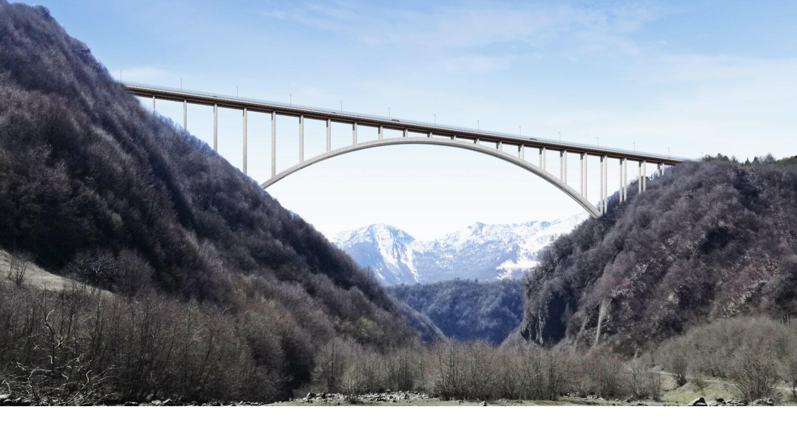 In the new road heading from Kvesheti to Kobi, in Georgia, one of the bridge sites, is located in a deep valley where the difficulty of the access combined with steeply slopes suggested the development of an arch type bridge solution. Due to the extensive experience and successful in this field Arenas & Asociados was commissioned to collaborate in this unique task.