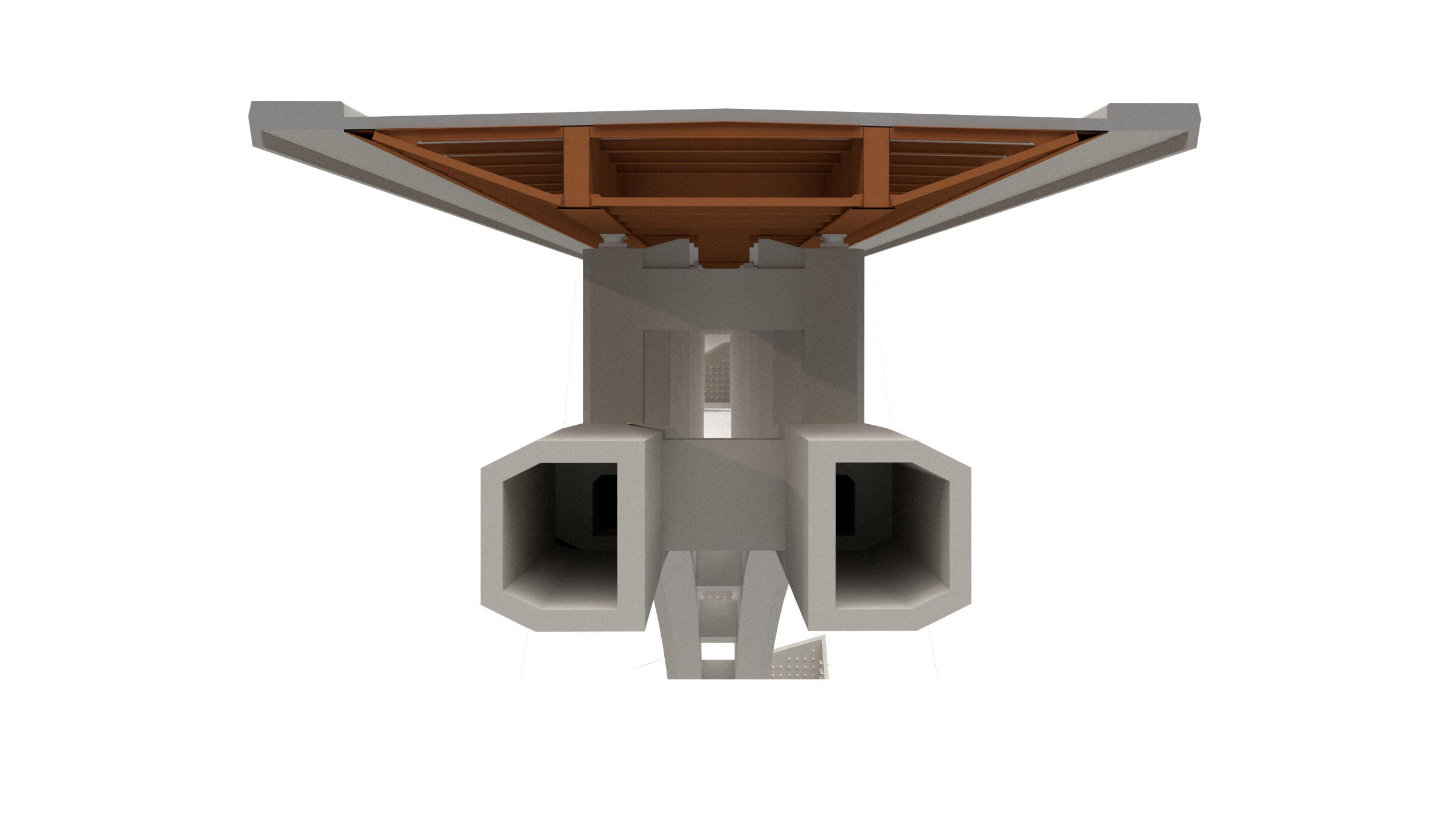 The arch is formed by two parallel hexagonal sections, linked together by means of diaphragms beneath the spandrel columns. These arches are designed in high‐performance concrete, and have pronounced external chamfers, looking for an appropriate aerodynamic behaviour that will reduce its drag coefficient, mandatory parameter in long‐span bridges. These improvements become essential in such a large-span structure.