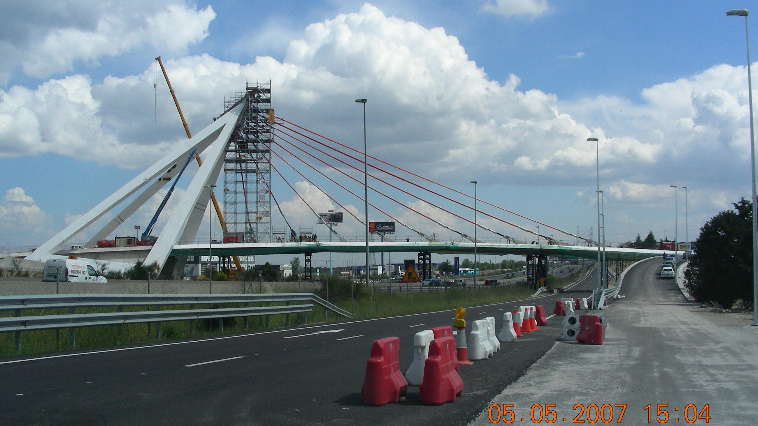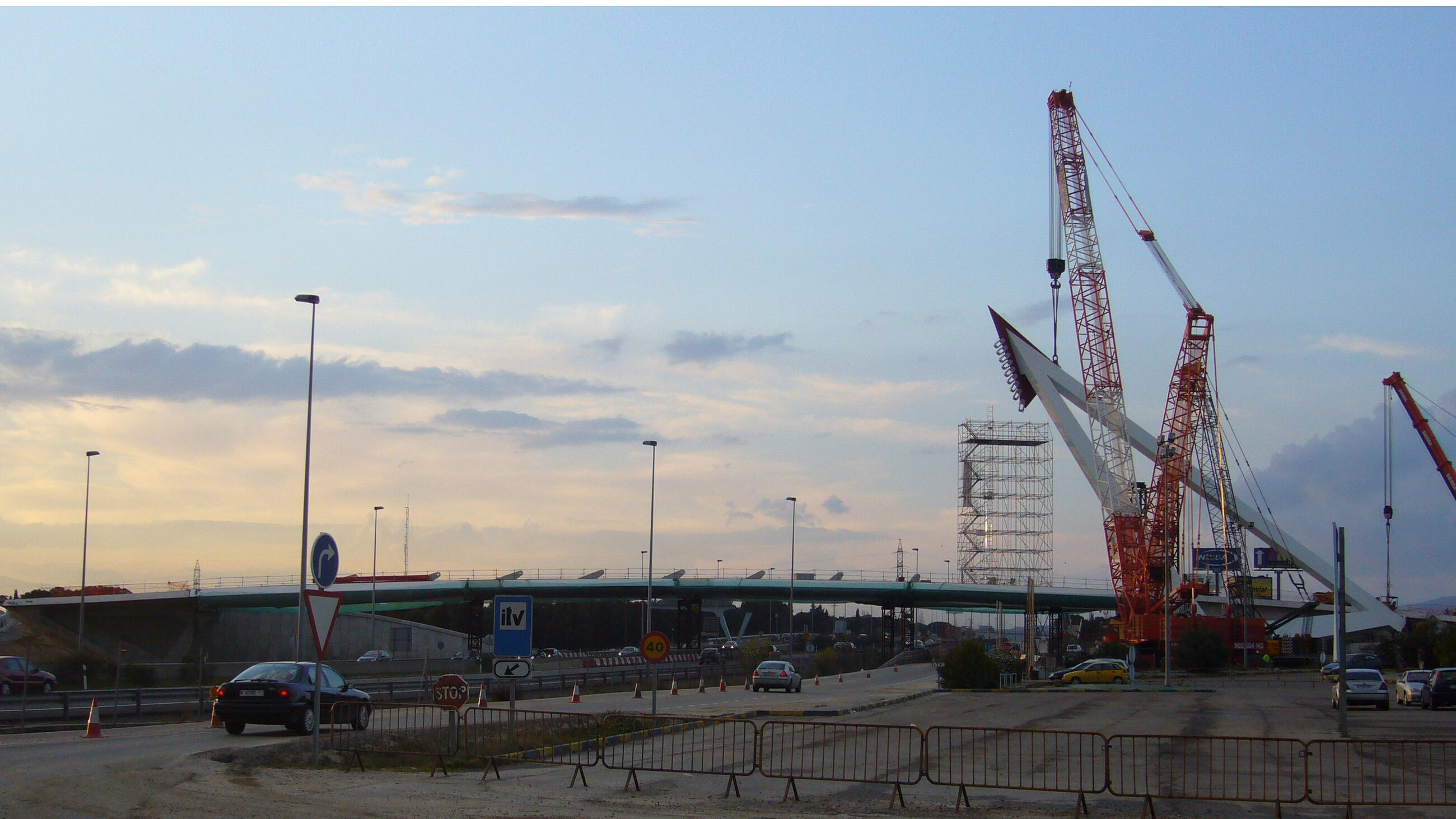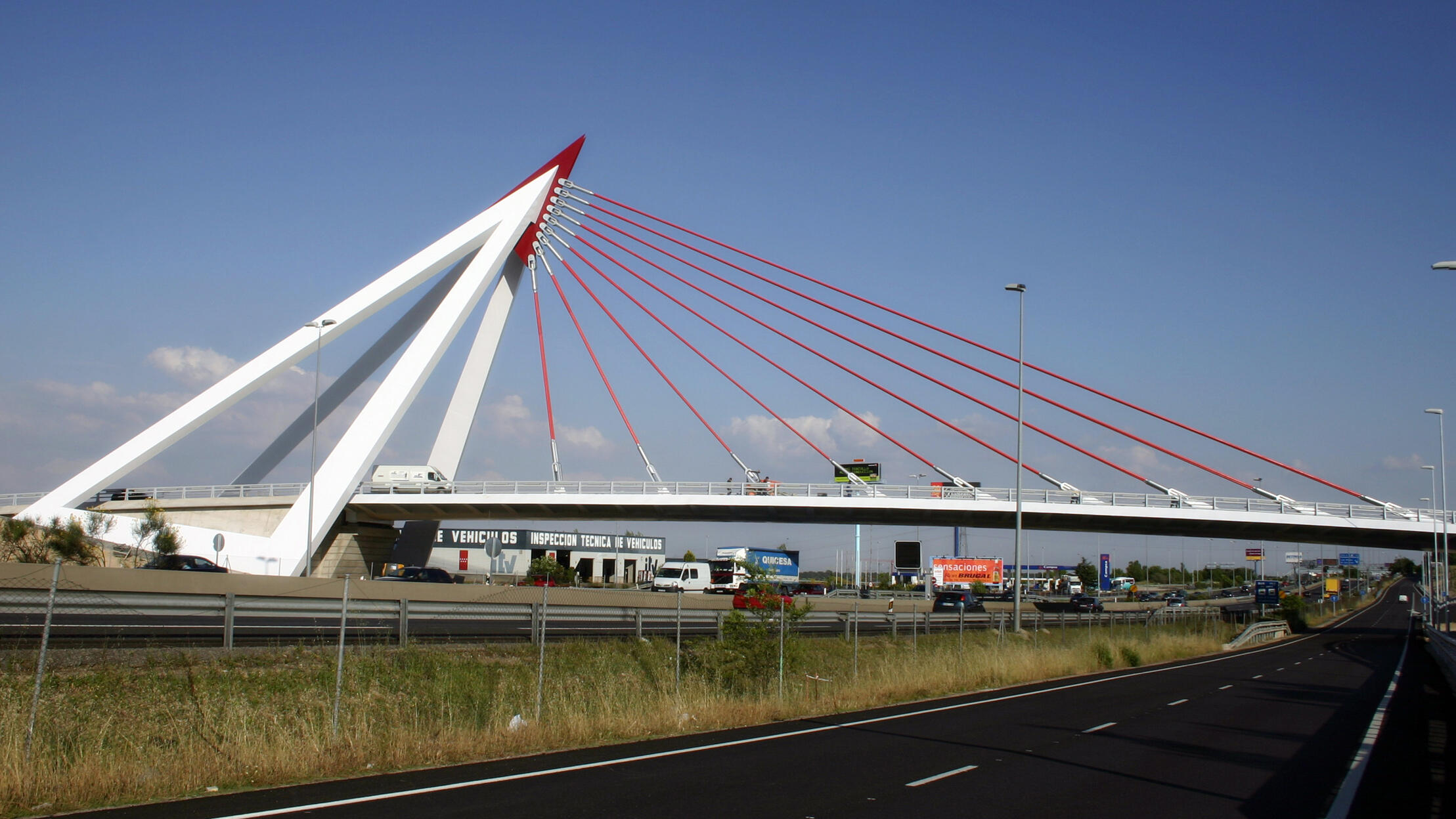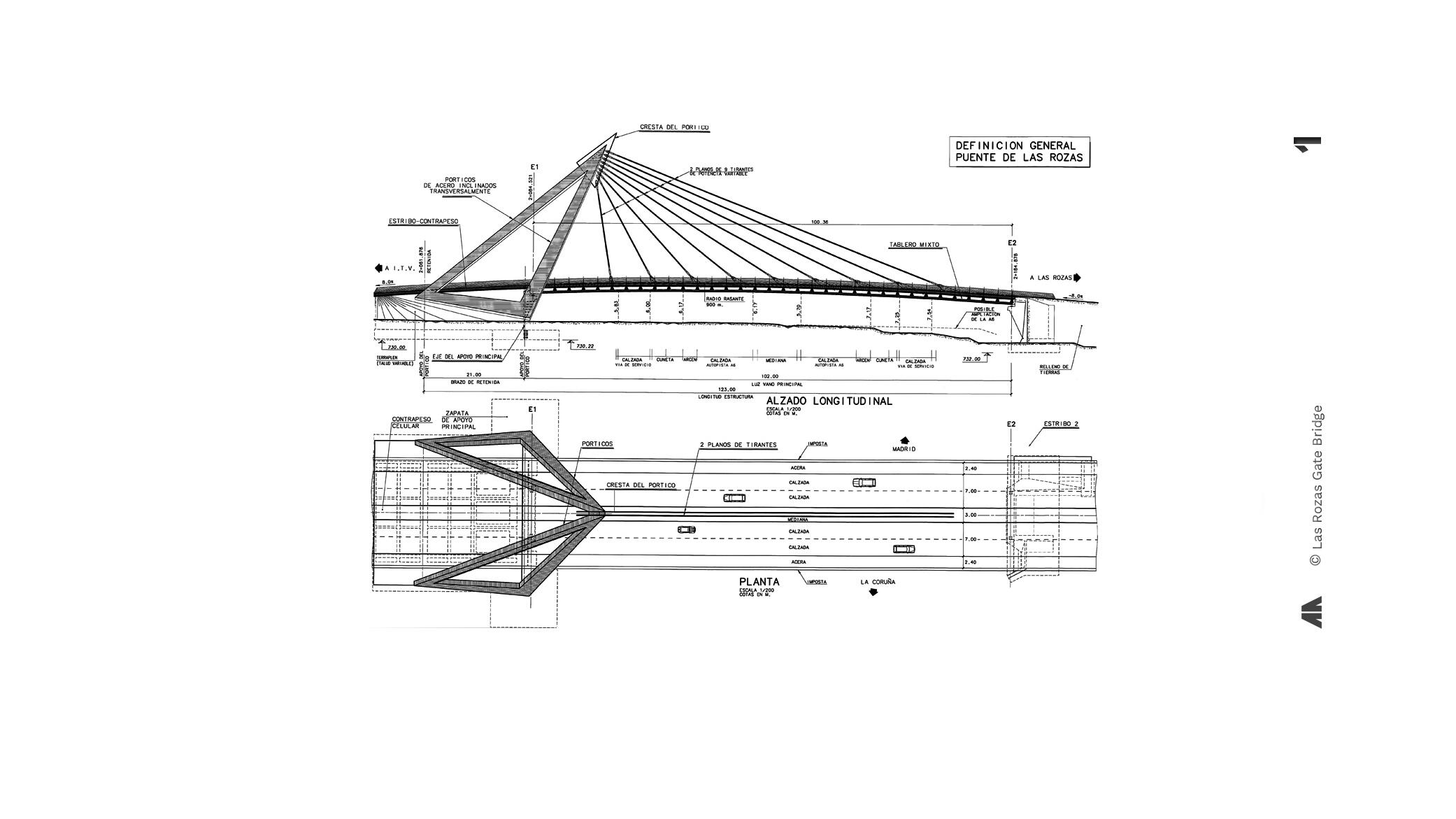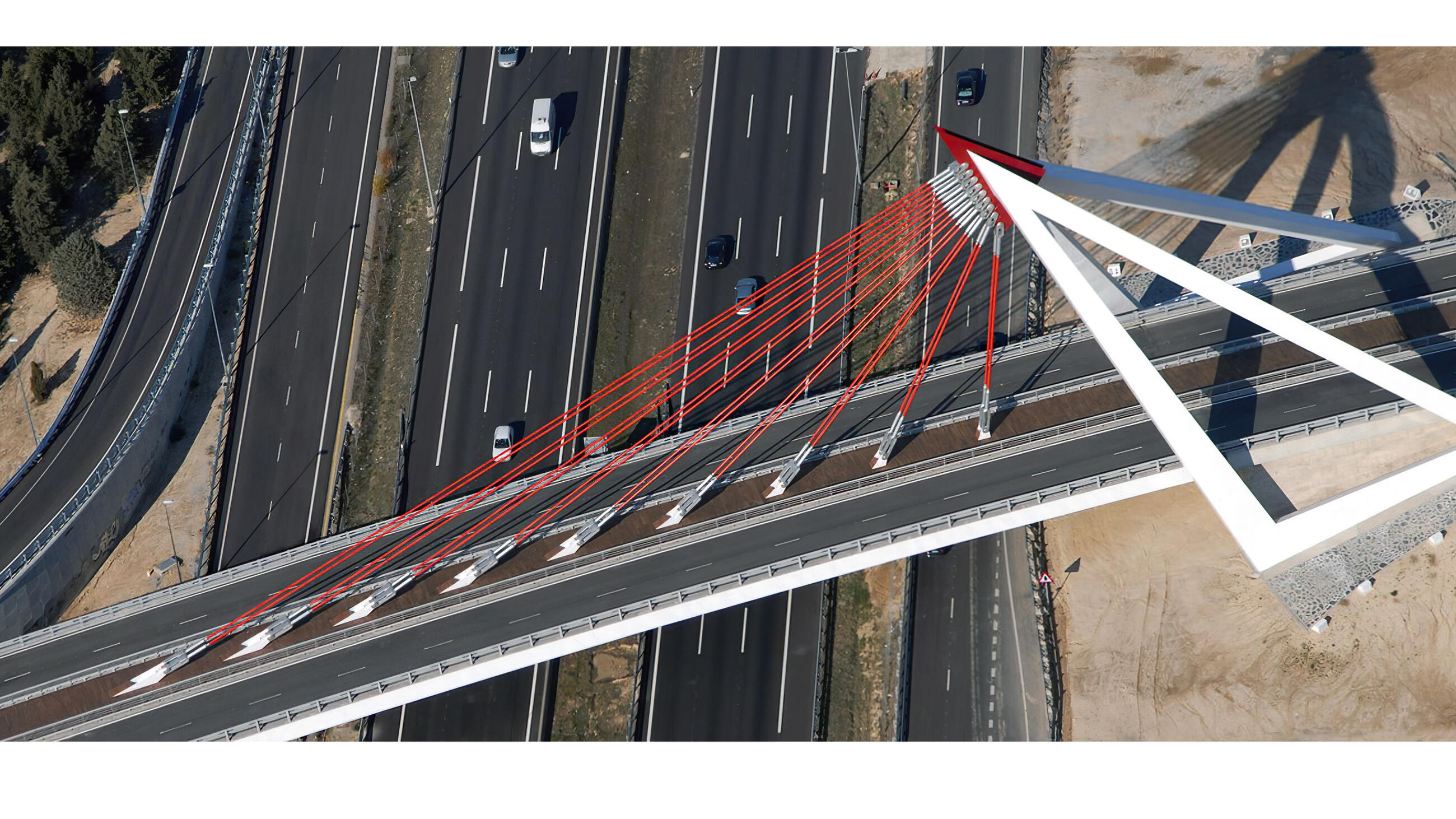 That bridge should also be an iconic structure to mark on the territory the access to Las Rozas. The Arenas&Asociados proposal was the winner with a rotund bridge from all the points of view, aesthetic, resisting, economical, and functional. The result was a skew crossing over the A6 with a cable-stayed bridge for minimizing the necessary web to save the 102 meters of the span.