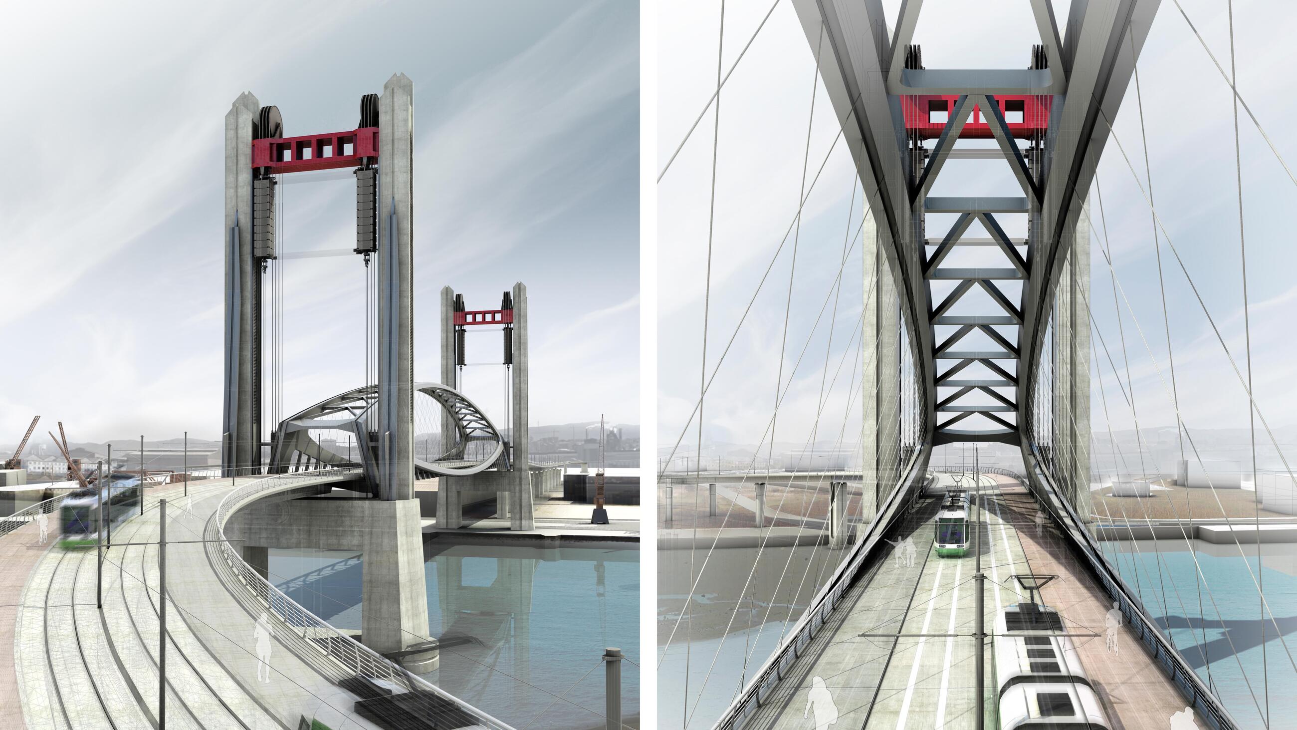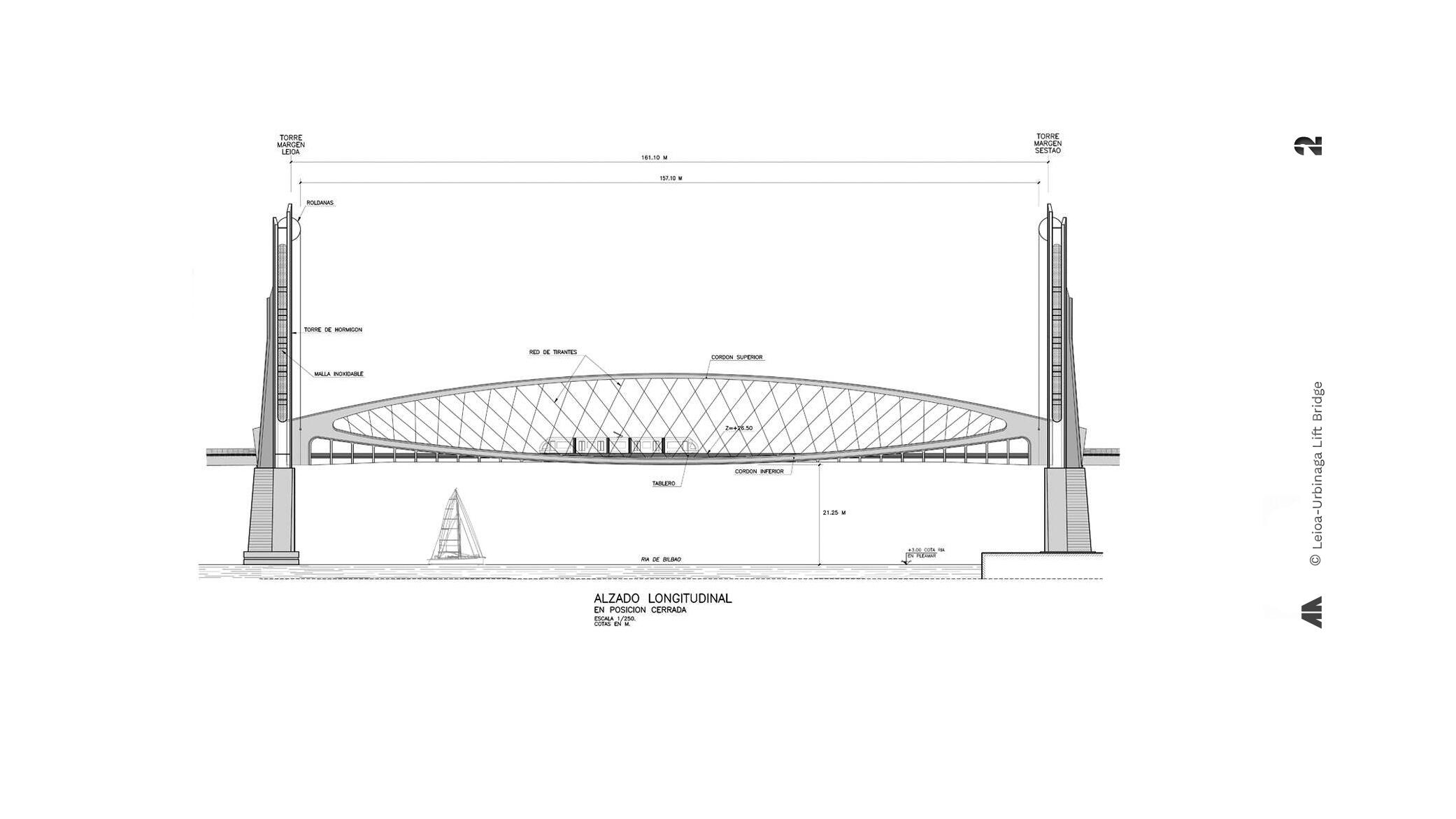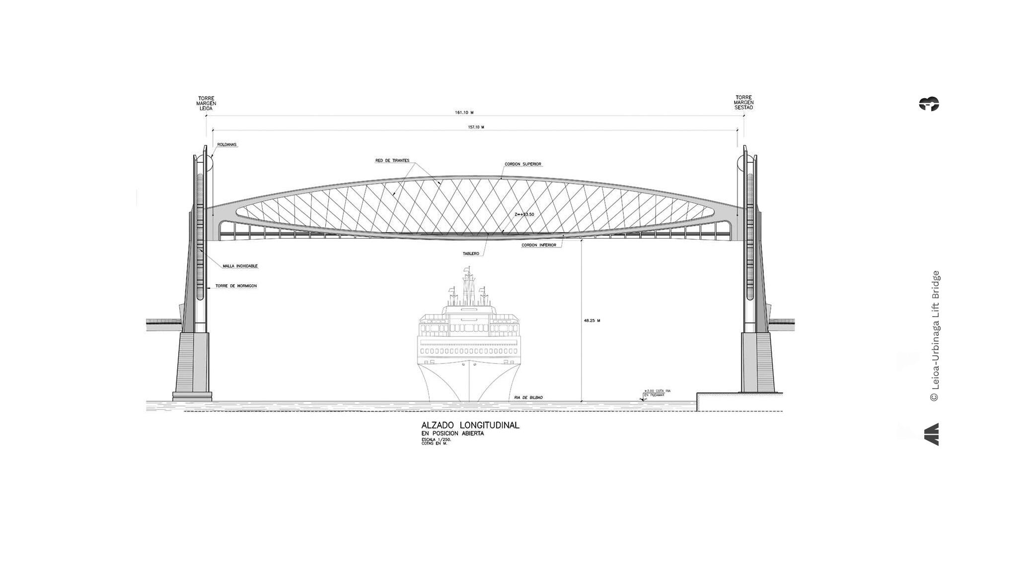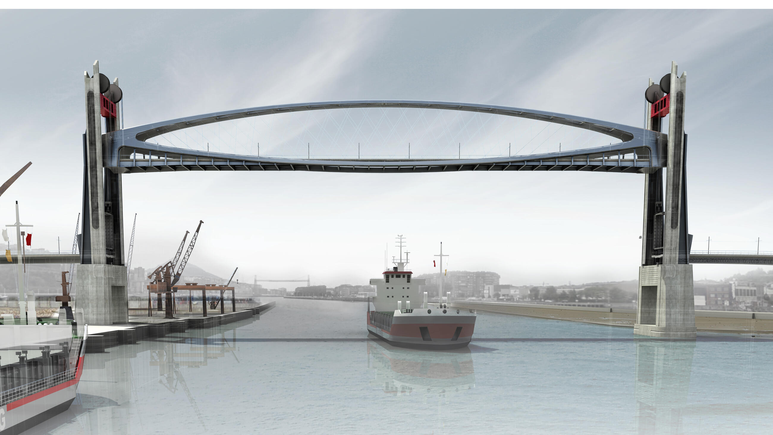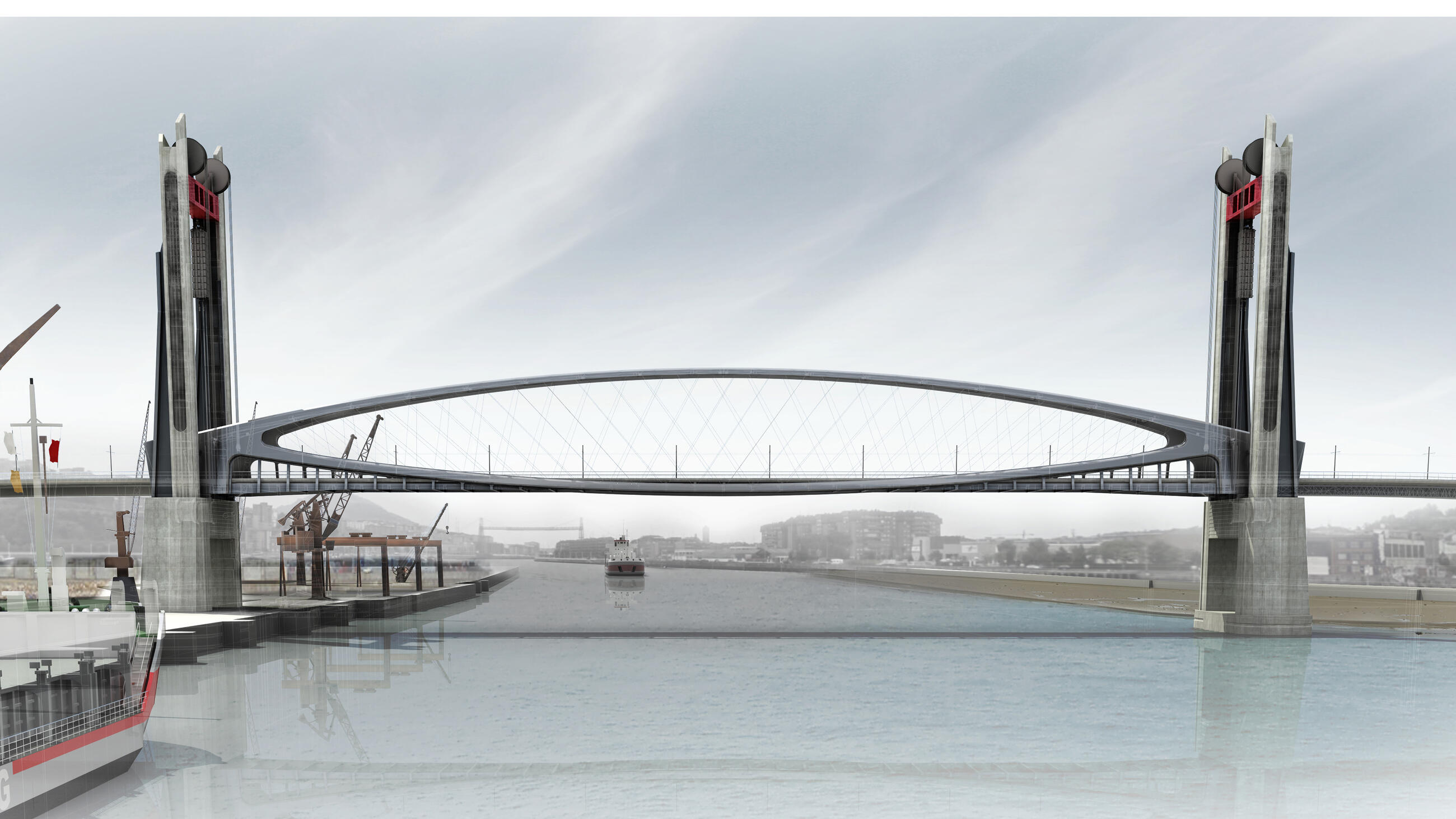 This new bridge, of an innovate typology, in its opened position turns into a tribute to the Portugalete Bridge, designed by Alberto de Palacio.